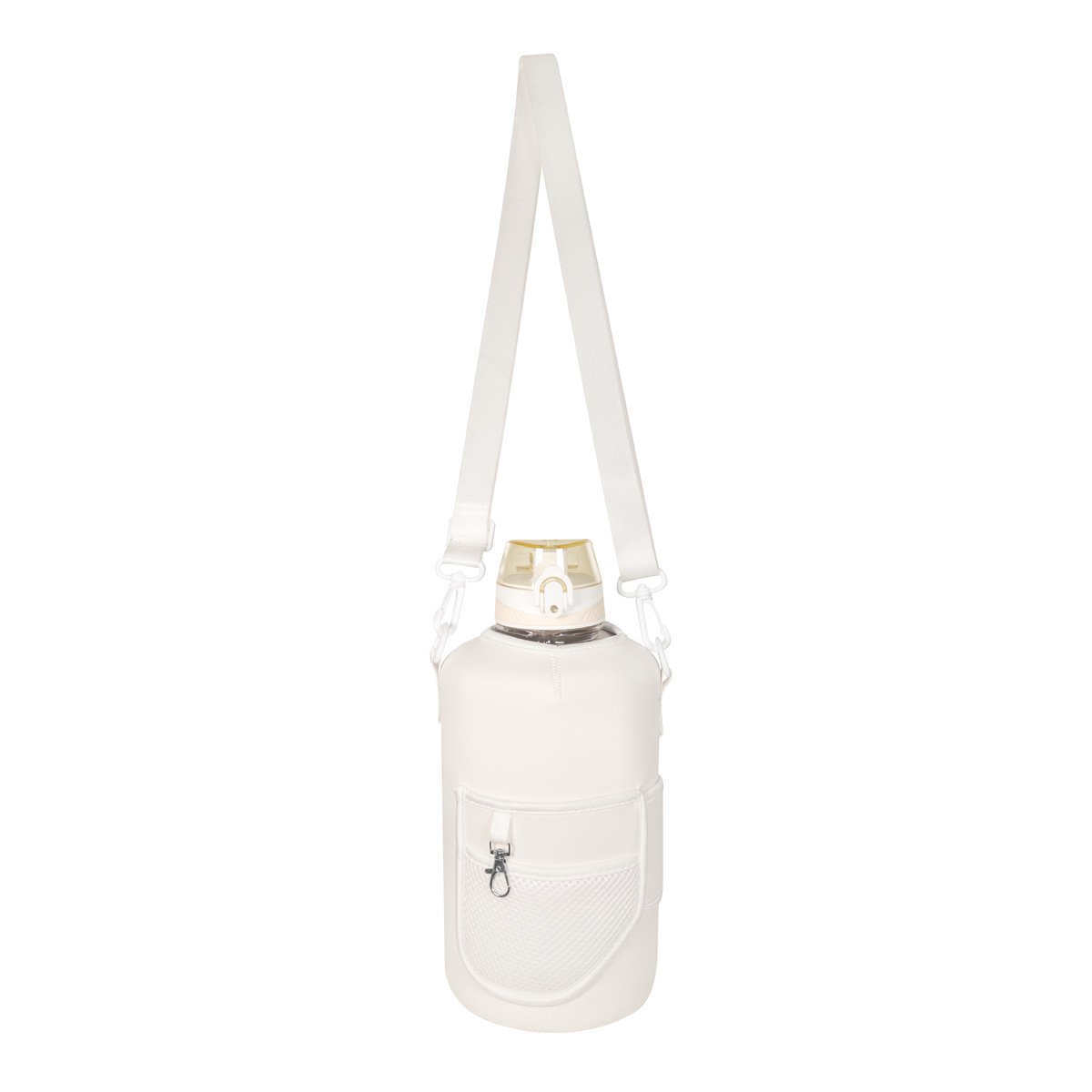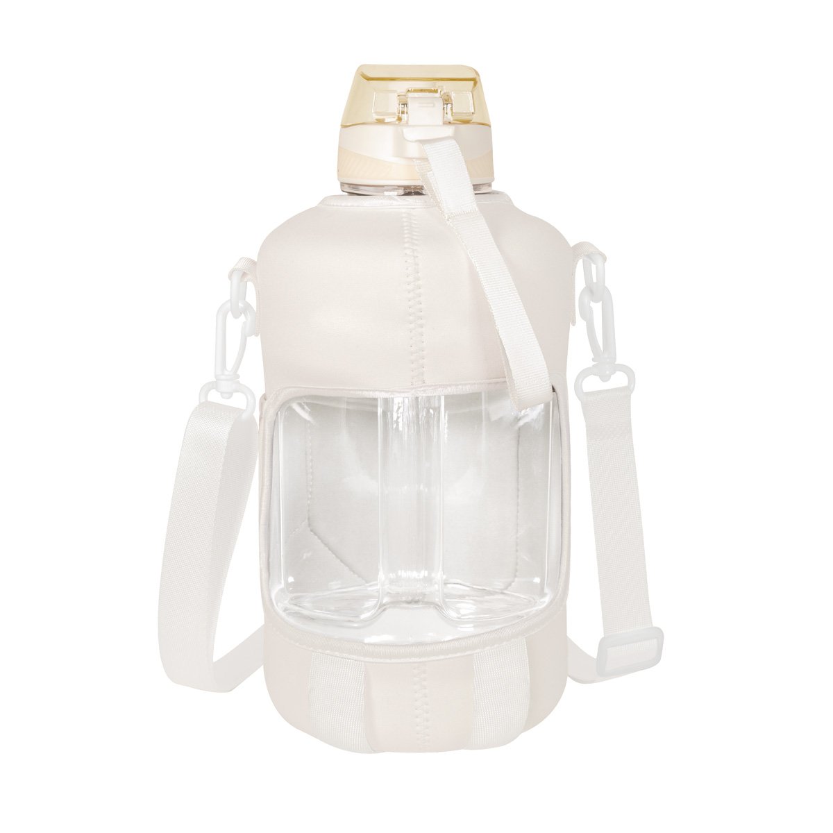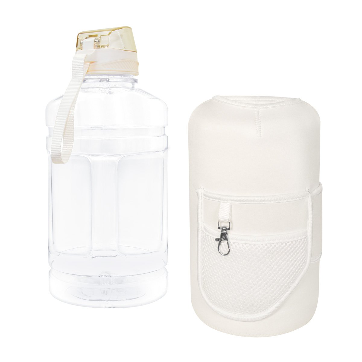 Cilindro con pared sencilla de plástico. Incluye funda removible de neopreno. Tapa de plástico con sistema de rosca y sobretapa que agrega un clip de seguridad para evitar derrames. Su tamaño esta diseñado para quienes necesitan llevar una gran cantidad de agua de manera práctica, es perfecto para actividades intensas, largas jornadas o aventuras al aire libre, asegurando que nunca te falte agua. Los bolsillos de su funda, te permiten organizar tus artículos esenciales y no perderlos de vista mientras te ejercitas y su correa ajustable lo hace ideal para llevarlo contigo sin mayor esfuerzo.