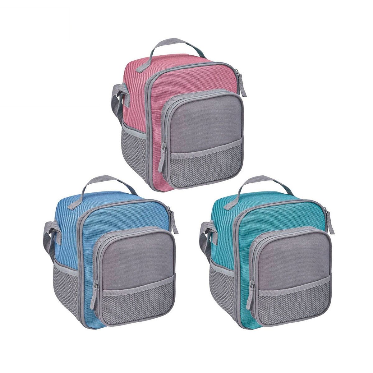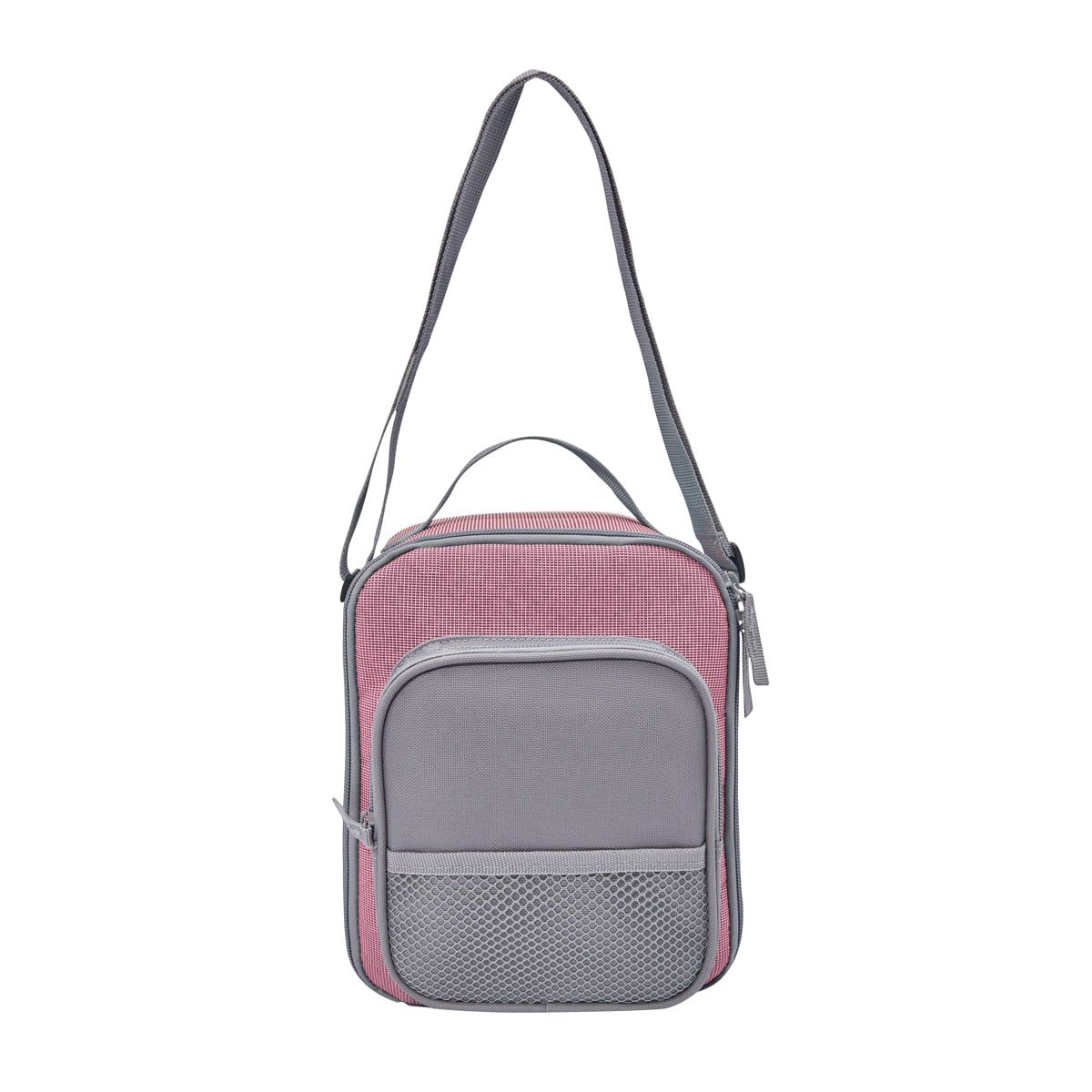 Interior plastificado resistente al agua. Compartimento principal con cierre. Bolsillo frontal con cierre y malla. Dos bolsillos laterales de malla. Asa superior y asa larga ajustable. Capacidad de 8 latas.