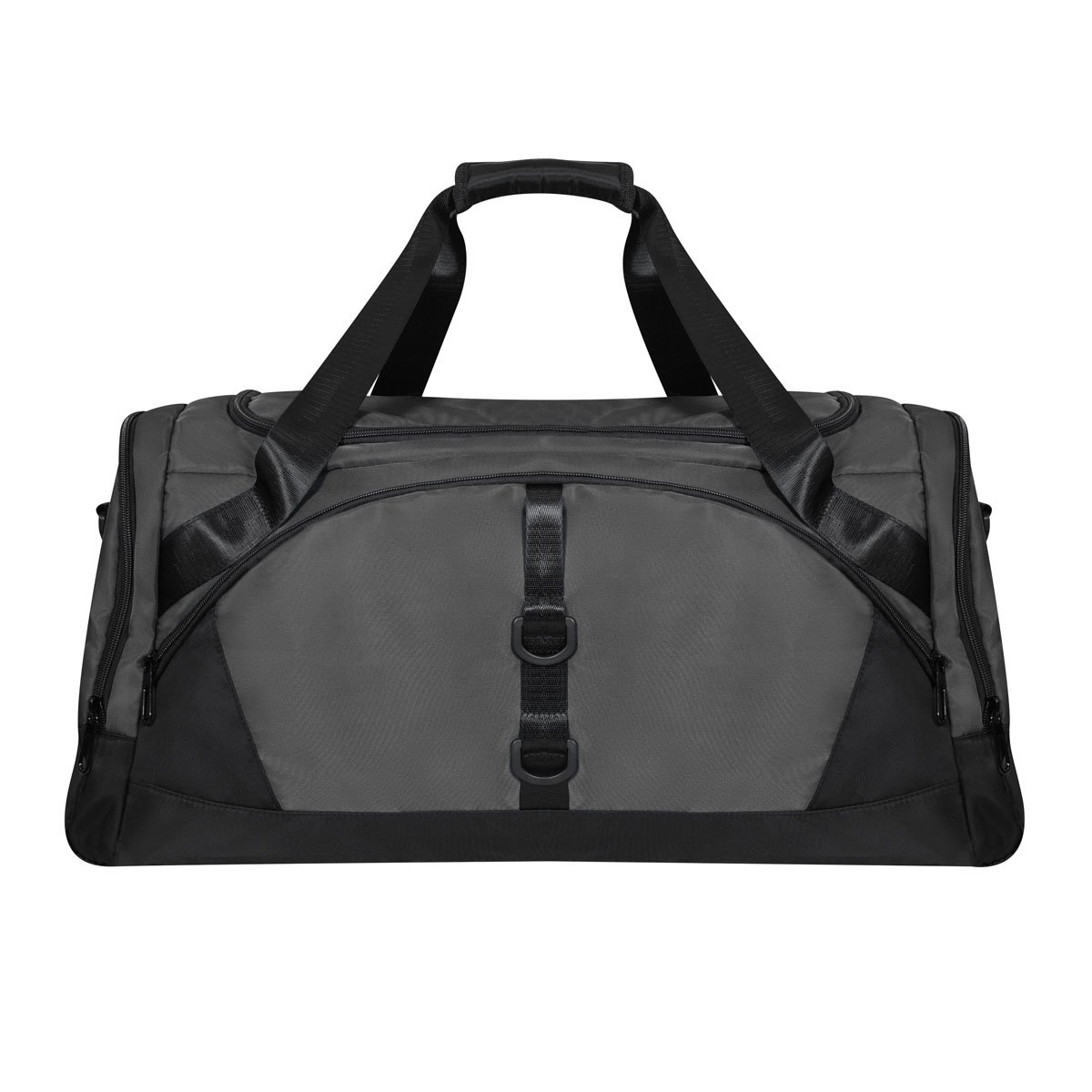 Maleta ideal para tus artículos deportivos. Cuenta con bolsillo frontal con cierre, el cual, permite organizar las pertenencias de forma eficiente. Incluye al centro un par de anillos de plástico ideales para guardar artículos pequeños esenciales. Su bolsillo lateral ofrece un acceso rápido a sus artículos. Además, cuenta con una práctica zapatera que permite mantener el calzado separado y protegido. Las asas superiores se ajustan a la altura deseada. El asa de mano incluye un protector con velcro, de esta manera podrá llevarla cómodamente. El interior de la maleta incluye un practico bolsillo impermeable, en el que podrá resguardar prendas húmedas, protegiendo el resto de sus artículos.