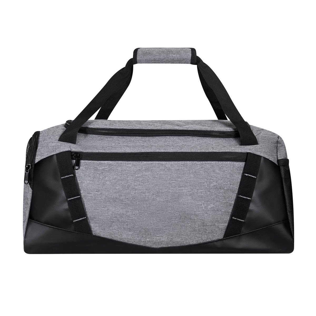 Maleta deportiva equipada con bolsa principal y una adicional en la parte frontal, ambas con cierre. Además, cuenta con un compartimento lateral para calzado y un bolsillo lateral de malla. Incluye correa ajustable para hombro y asas de agarre superior. Las costuras frontales permiten colgar objetos en ellas.