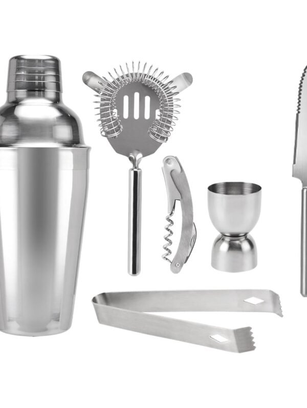 Set de bar. Incluye caja rígida de regalo, licorera con funda de curpiel y tapa con rosca para evitar derrames, vaso de cristal, set de 4 cubos enfriadores con funda de terciopelo, pinzas para hielo y 2 mini vasos metálicos.