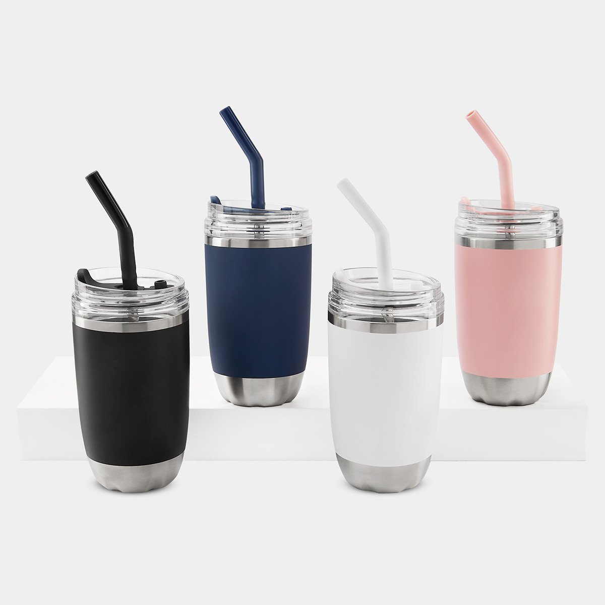 Doble pared. Cerrado al vacío. Pared interna y externa de acero inoxidable. Tapa push de plástico con sobretapa de silicón removible y ranura especial con tapón para popote. Incluye popote metálico con boquilla de silicón. Mantiene temperatura caliente 2 hrs y temperatura fría 8 hrs. Caja individual incluida.