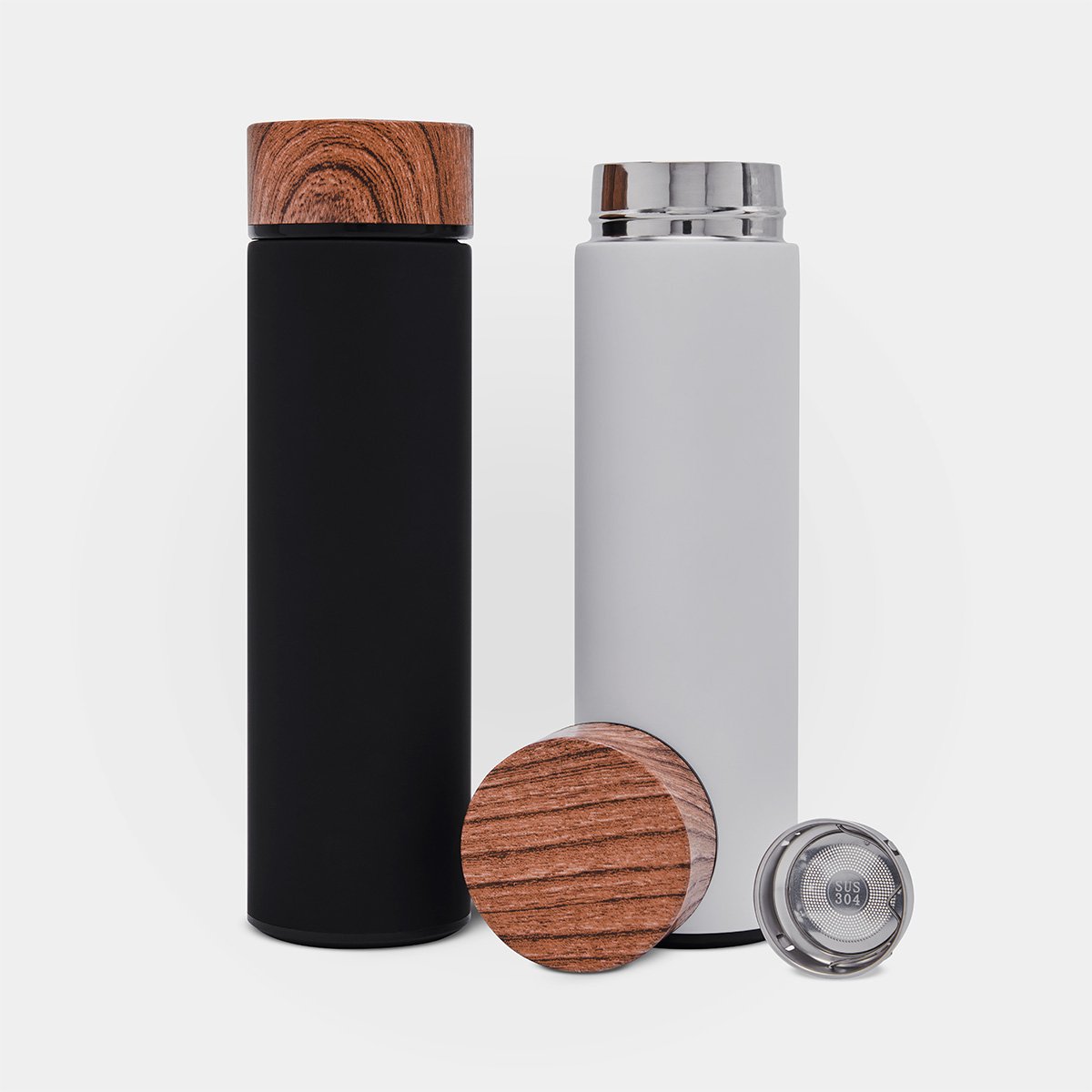 Doble pared. Cerrado al vacío. Pared interna y externa de acero inoxidable. Terminado tipo rubber. Incluye tapa de plástico simulación madera y filtro de acero inoxidable. Mantiene temperatura caliente 6 hrs y temperatura fría 8 hrs aproximadamente. Incluye caja individual.